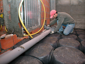 Contestualmente alla stesura dei moduli, si inseriscono e si raccordano i canali in PVC destinati al circolo dell’aria verso l’esterno e al passaggio dei vari impianti di scarico.