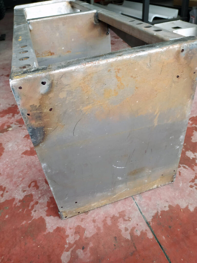 Terminato il montaggio del supporto, con la smerigliatrice e un disco da sbavo si ripuliscono le saldature e si regolarizzano, prima di passare all’aggiunta degli elementi accessori.