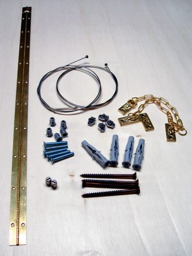 Si predispongono i fori per le viti delle catenelle, l’asticella reggitenda, i tasselli ed i ganci per far passare i cavetti. Rifinito il tutto con vernice atossica ad acqua si passa al montaggio definitivo a muro.