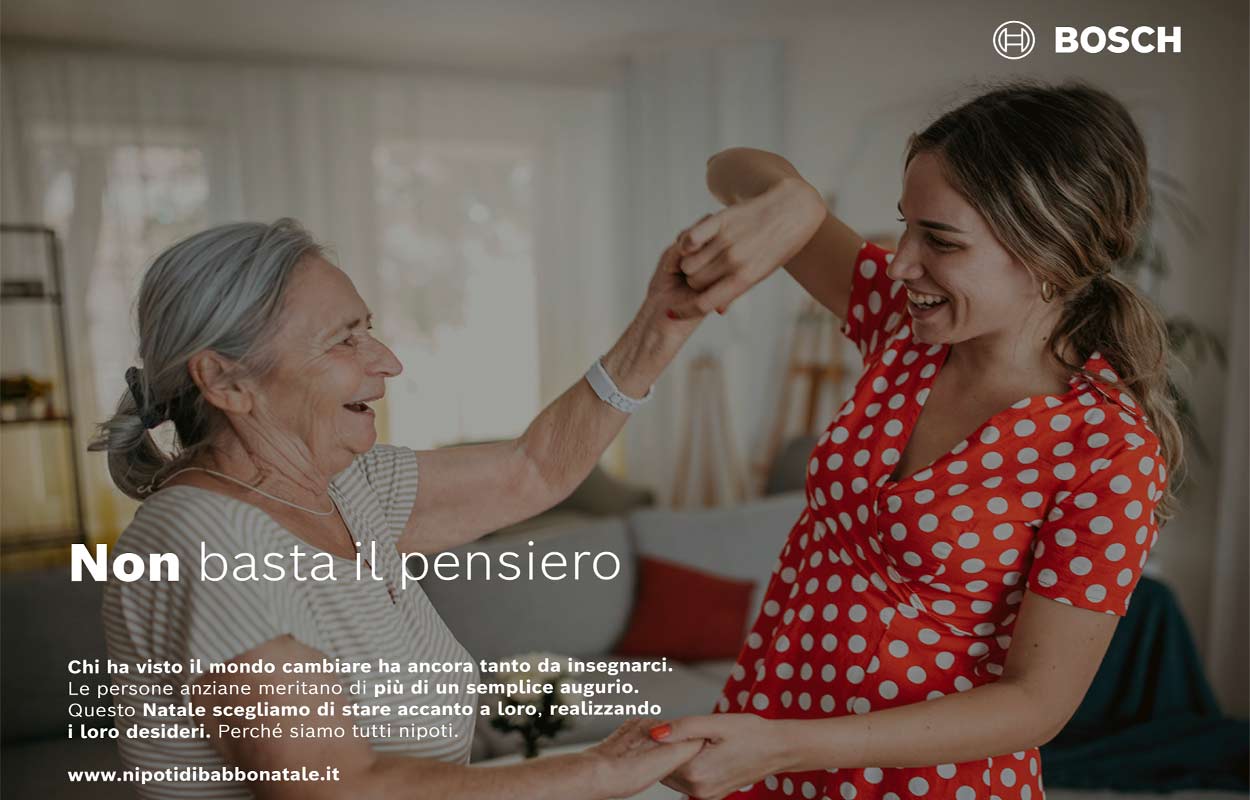 La campagna di comunicazione “Non basta il pensiero” fa parte delle attività di CSR del Gruppo Bosch in Italia. Lanciata nel mese di novembre sui canali social e interni dell’azienda, la campagna ha lo scopo di sensibilizzare il pubblico sul ruolo e sulla condizione degli anziani nella nostra società attraverso il racconto emozionante di alcuni ospiti delle RSA sul nostro territorio. “Non basta il pensiero” vuole essere proprio un invito a riscoprire i sogni, le storie e le esperienze degli anziani che, specialmente nel periodo di Natale, rischiano di sentirsi più soli.