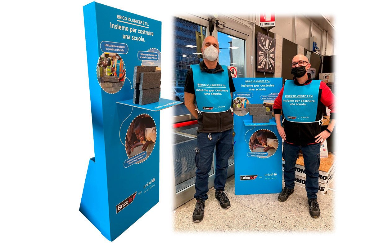 Nel corso dell’anno, nei punti vendita Brico io saranno presenti i dialogatori UNICEF per dare informazioni sul progetto e invitare le persone a diventare donatori regolari UNICEF.