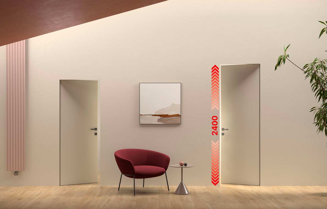 Il modello xREVERx XL, grazie al doppio scasso per serratura e riscontro magnetico, consente di scegliere liberamente il verso di apertura, garantendo un’eccezionale adattabilità anche con un’altezza di 2400 mm, un’esclusiva sul mercato per questa dimensione.