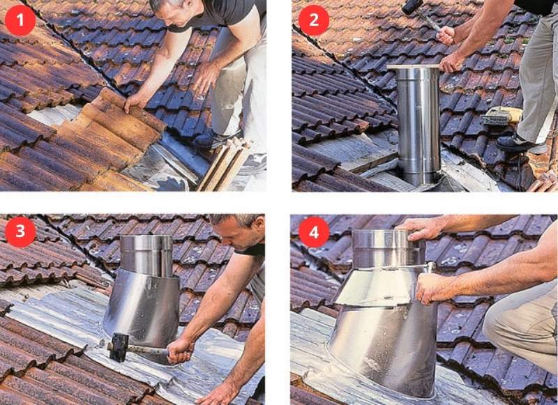 4 – Installiamo infine una scossalina spiovente, per evitare che acqua, polvere e detriti possano penetrare alla base del solaio. A questo punto il comignolo è pronto all’uso e va testato.