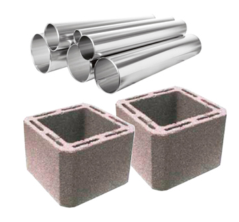 - Blocchi prefiniti cavi e tubi in acciaio o altri metalli resistenti.